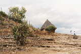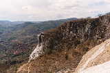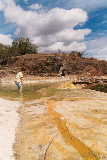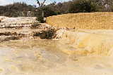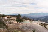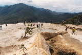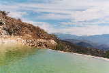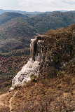 25 miles east of the city of Oaxaca, natural springs containing CO2 gas bubble out of the ground, making it appear that the water is boiling. The acidity of the water carries large amounts of dissolved minerals. The result is spectacular turquoise pools.and huge "frozen" waterfalls of minerals. |